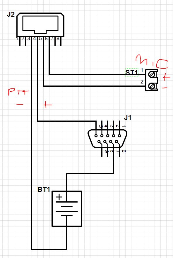Doing some googling, I found spotty random information on how to setup PTT control using an RS232 port. The method I found and used, is pretty simple, using a small battery pack, and some simple wiring to the RS232 port.